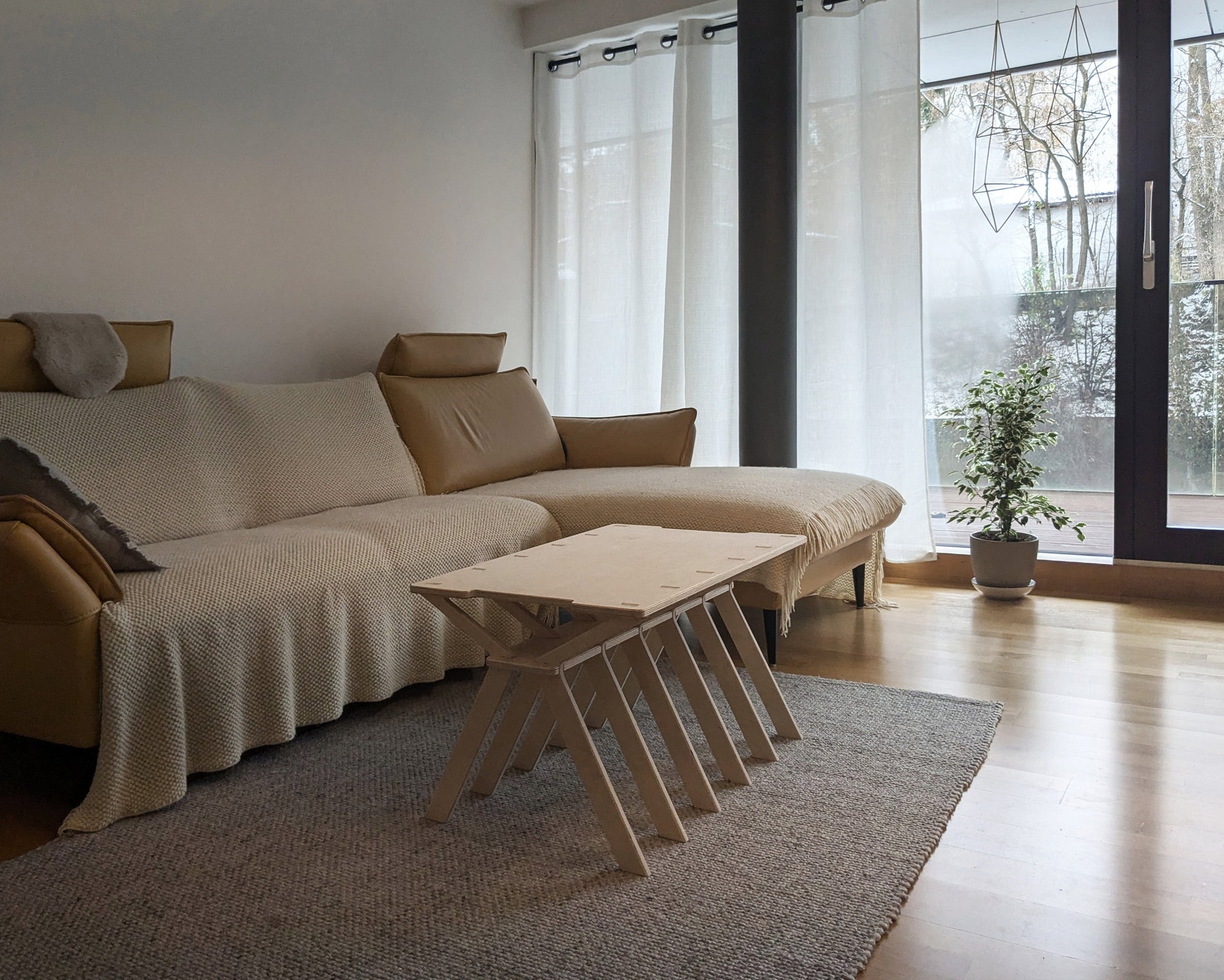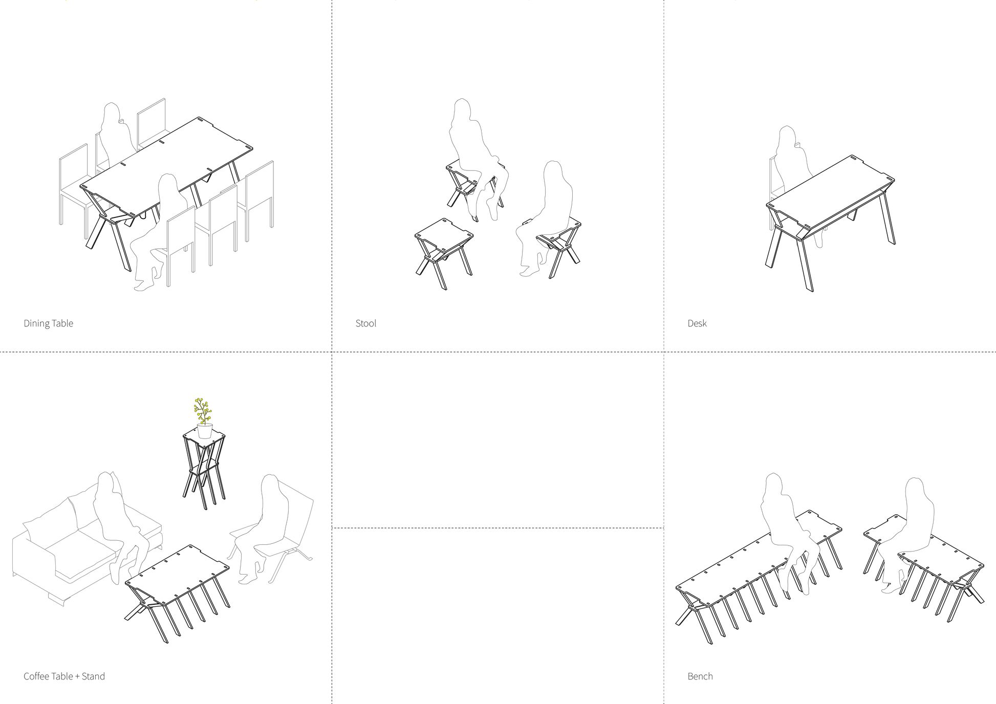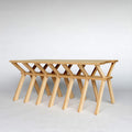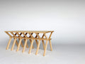 Millipede is designed to work in different roles, depending on how you configure it: bench for relaxed seating in a living room, gallery, or reception area; coffee table that invites gathering and conversation; sculptural stool or stand-alone piece adding character; desk for a unique work surface; and dining table for intimate meals or casual gatherings.