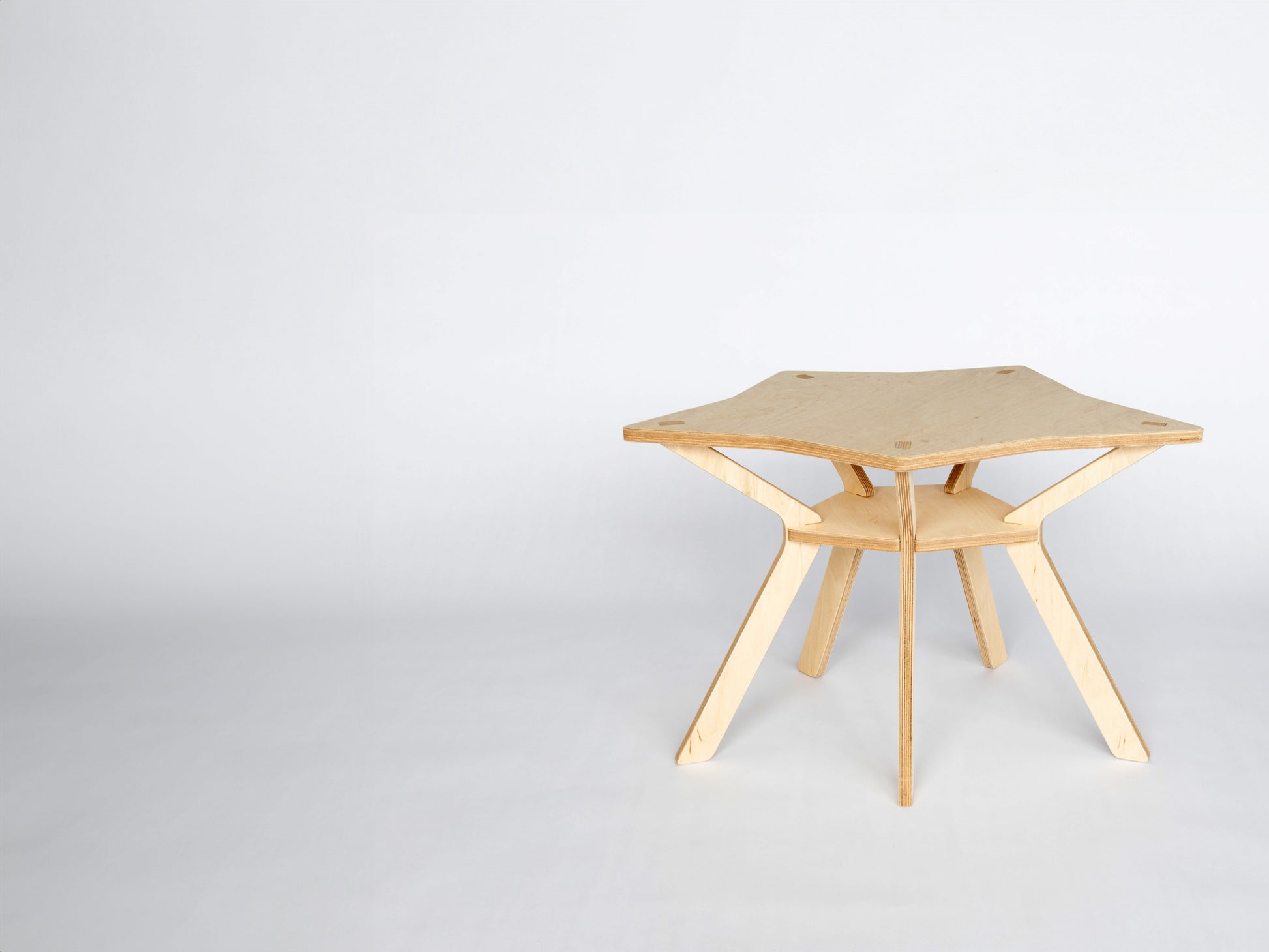 Petal lets you create functional flowers - from perfectly symmetrical and geometric blooms to wild, unpredictable blossoms. Its abstract top surface clearly hints at petals, balanced by a scaled shelf underneath, and legs that sometimes give it an almost animal-like presence.